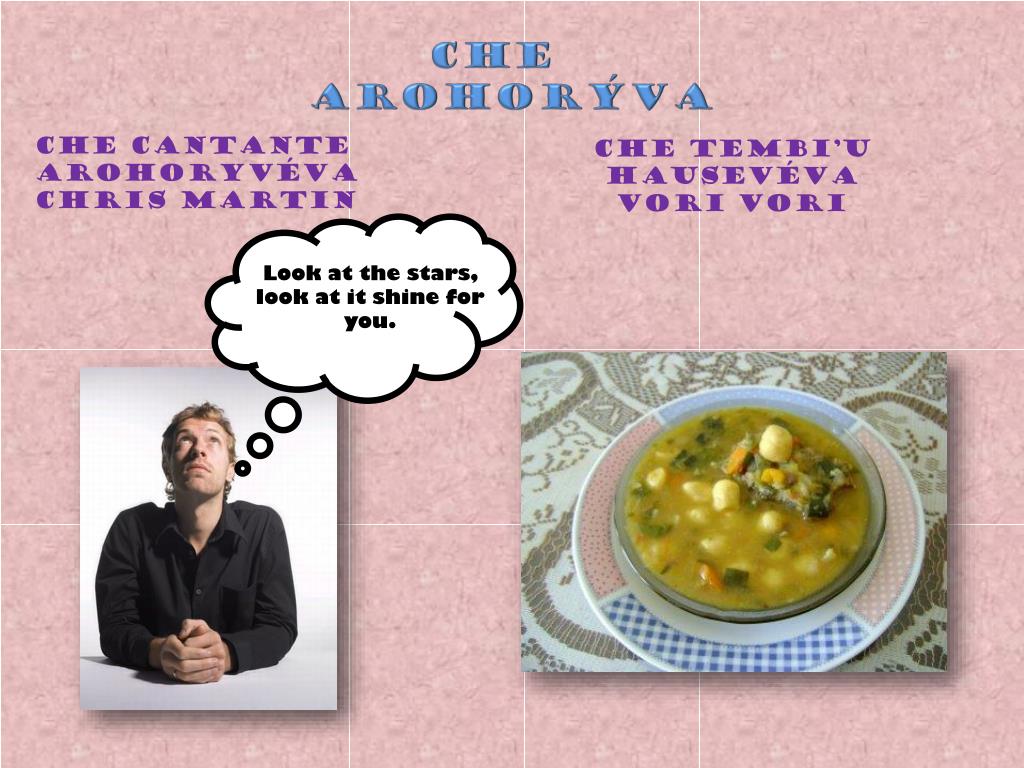CHE ARohorýva Che cantante arohoryvéva Chris Martin Che tembi’uhausevévavorivori Look at the stars, look at it shine for you.