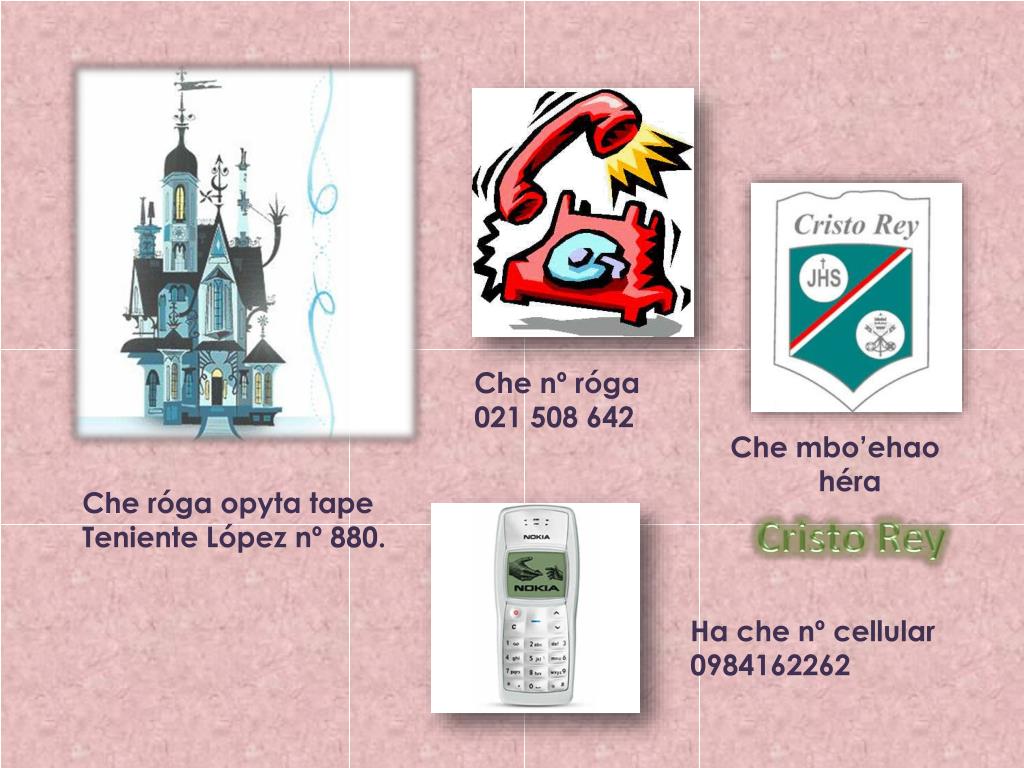 Che nº róga 021 508 642 Che mbo’ehao héra Che rógaopyta tape Teniente López nº 880. Cristo Rey Ha che nº cellular 0984162262