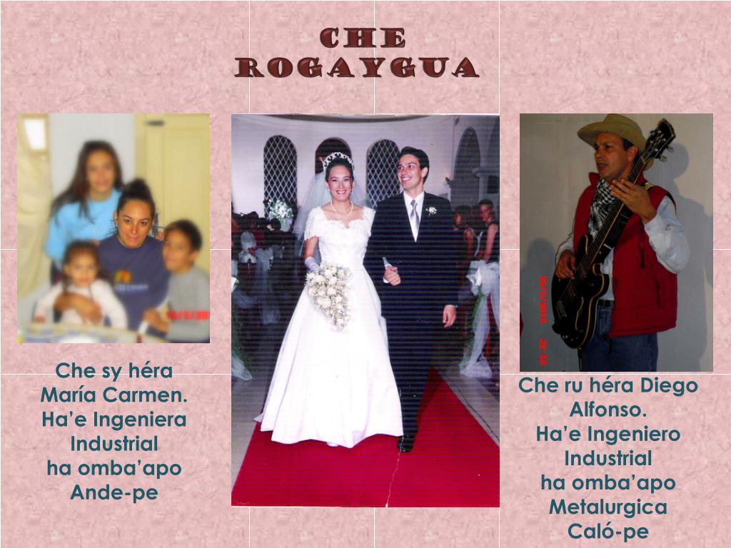 CHE Rogaygua Che syhéra María Carmen. Ha’e Ingeniera Industrial ha omba’apo Ande-pe Che ruhéra Diego Alfonso. Ha’e Ingeniero Industrial ha omba’apo Metalurgica Caló-pe