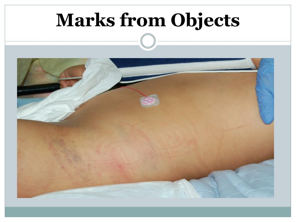 Physical Abuse Indicators • Bony areas – knees, shins, forehead (where kids fall) not as concerning