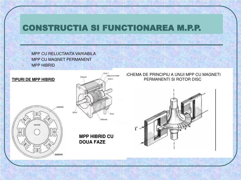 CONSTRUCTIA SI FUNCTIONAREA M.P.P. • MPP CU RELUCTANTA VARIABILA • MPP CU MAGNET PERMANENT • MPP HIBRID
