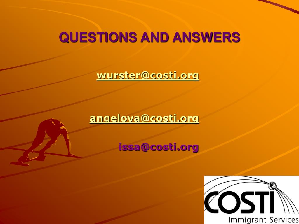 QUESTIONS AND ANSWERS wurster@costi.org angelova@costi.org issa@costi.org