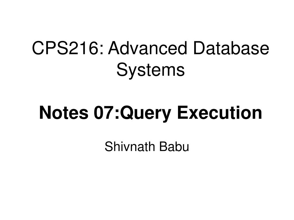 CPS216: Advanced Database SystemsNotes 07:Query Execution Shivnath Babu