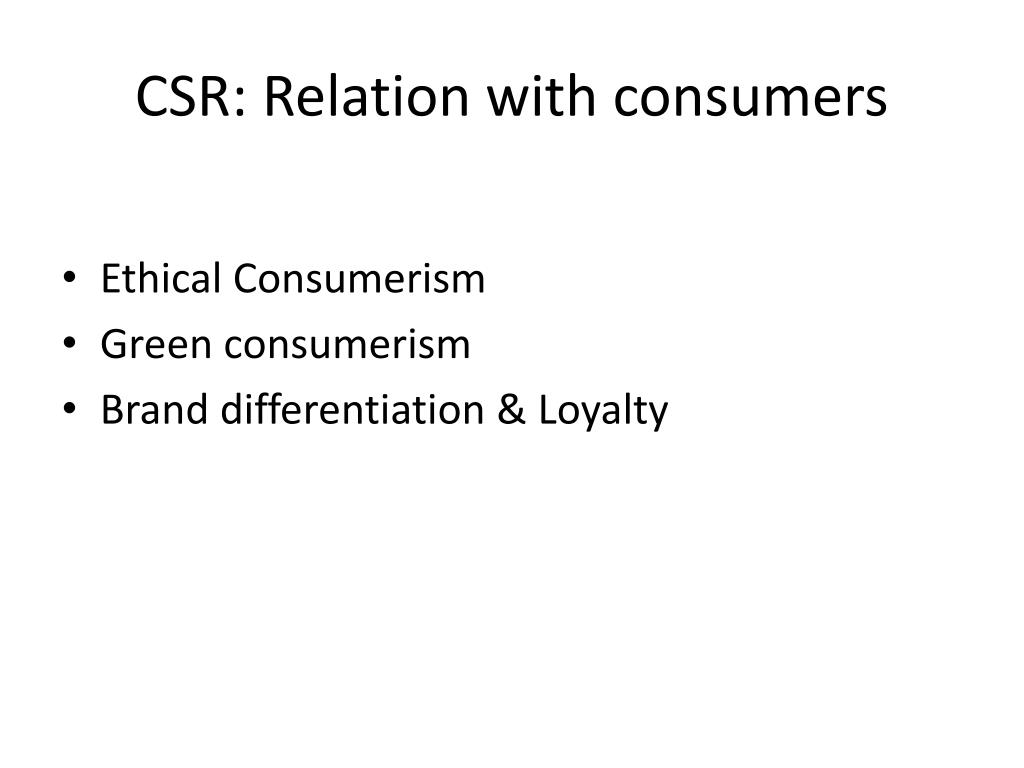 CSR: Relation with consumers • Ethical Consumerism • Green consumerism • Brand differentiation & Loyalty