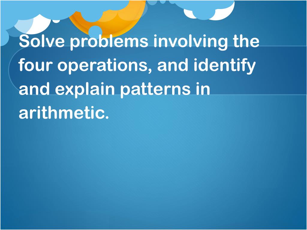 Solve problems involving the four operations, and identify and explain patterns in arithmetic.