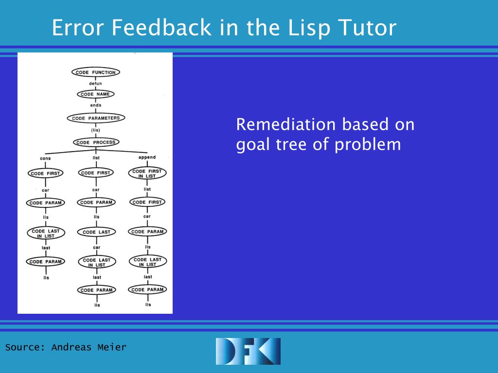 Error Feedback in the Lisp Tutor Remediation based on goal tree of problem