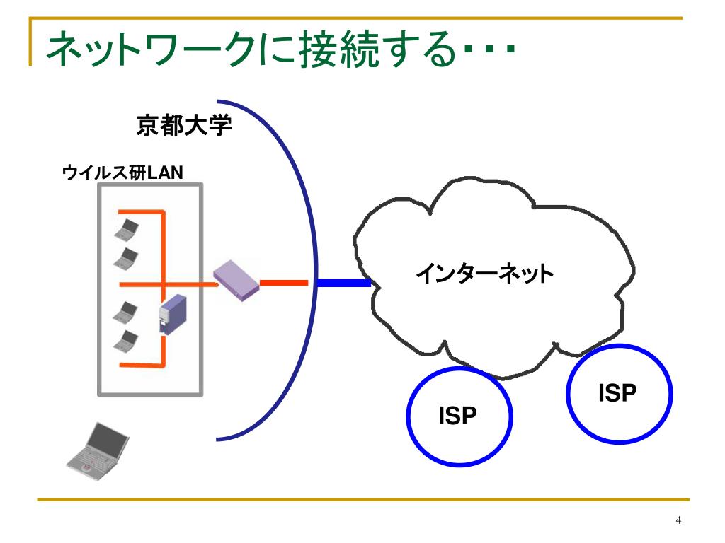 インターネット ISP ISP ネットワークに接続する・・・ 京都大学 ウイルス研LAN