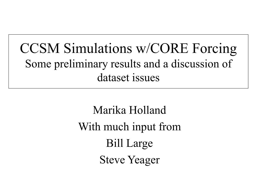 CCSM Simulations w/CORE ForcingSome preliminary results and a discussion of dataset issues Marika Holland With much input from Bill Large Steve Yeager