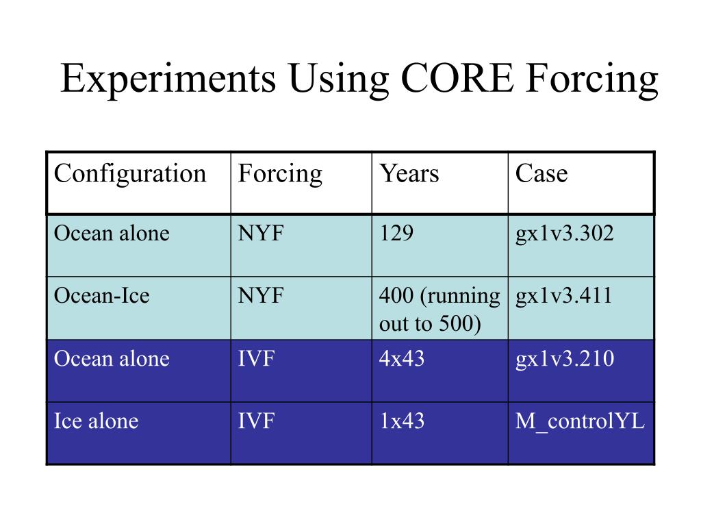 CCSM Simulations w/CORE Forcing Some preliminary results and a discussion of dataset issues. Marika Holland With much input from Bill Large Steve Yeager. Experiments Using CORE Forcing. CORE I Results - Ocean-Ice Coupled Runs. MOC. Sea Ice equilibrates rapidly.