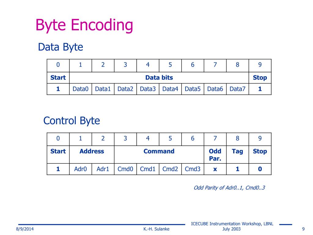 Byte Encoding Data Byte Control Byte Odd Parity of Adr0..1, Cmd0..3 K.-H. Sulanke