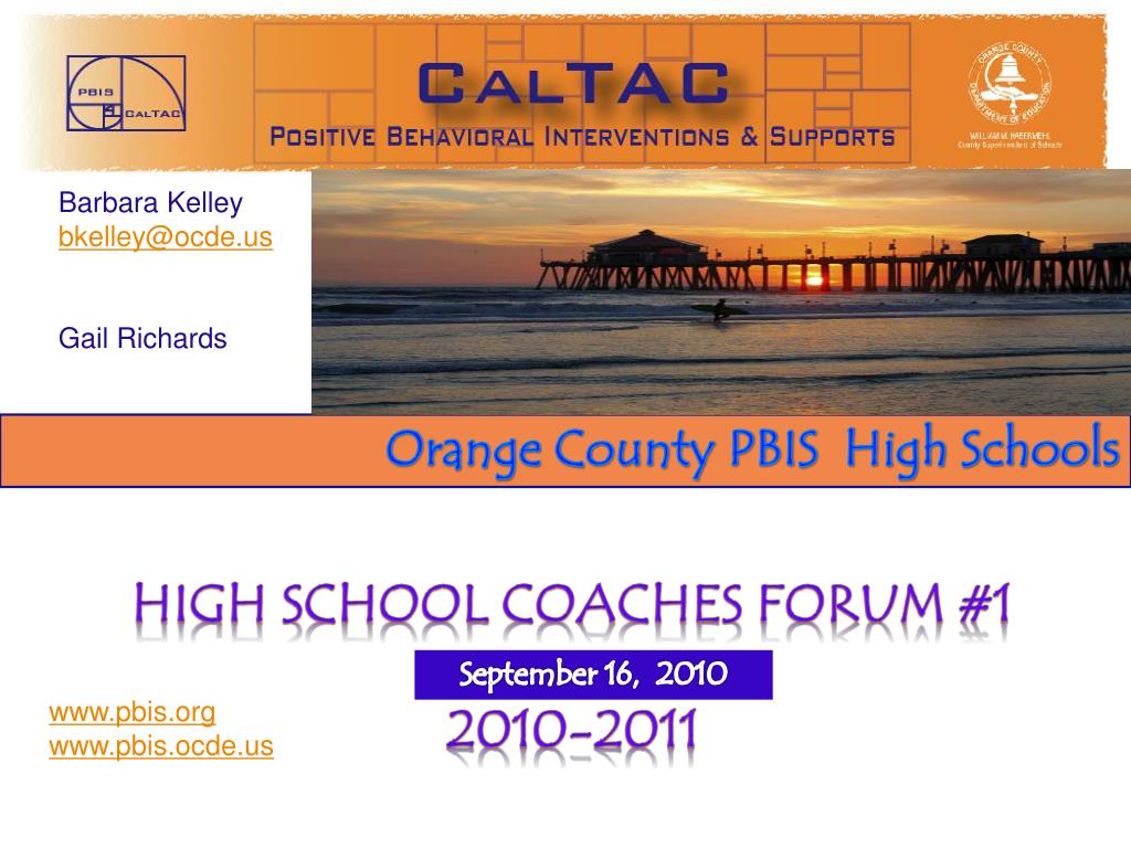 Barbara Kelley bkelley@ocde.us Gail Richards High School Coaches Forum #1 2010-2011 Orange County PBIS High Schools September 16, 2010 www.pbis.org www.pbis.ocde.us