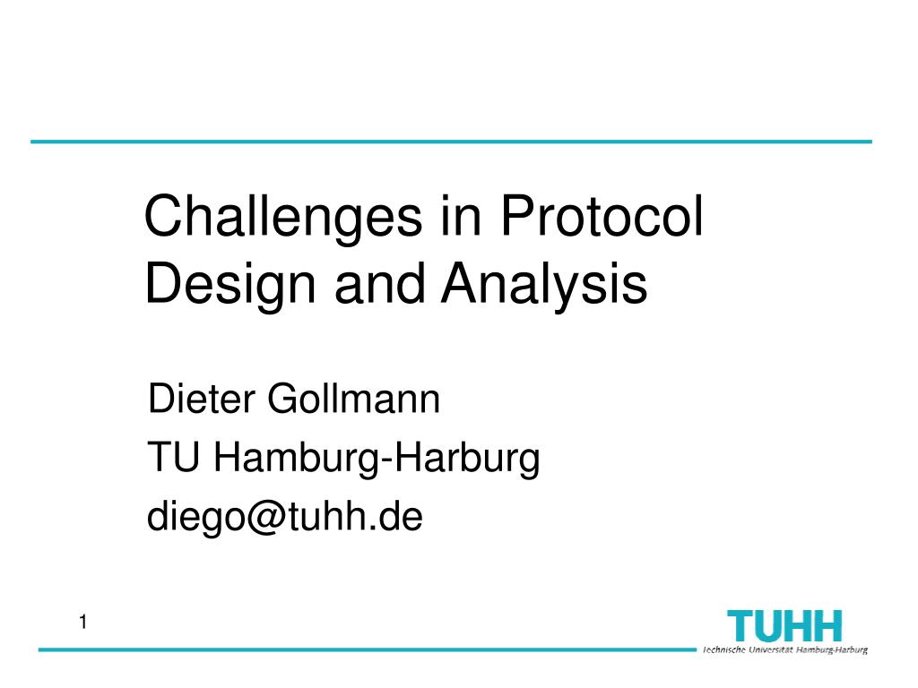 Challenges in Protocol Design and Analysis Dieter Gollmann TU Hamburg-Harburg diego@tuhh.de