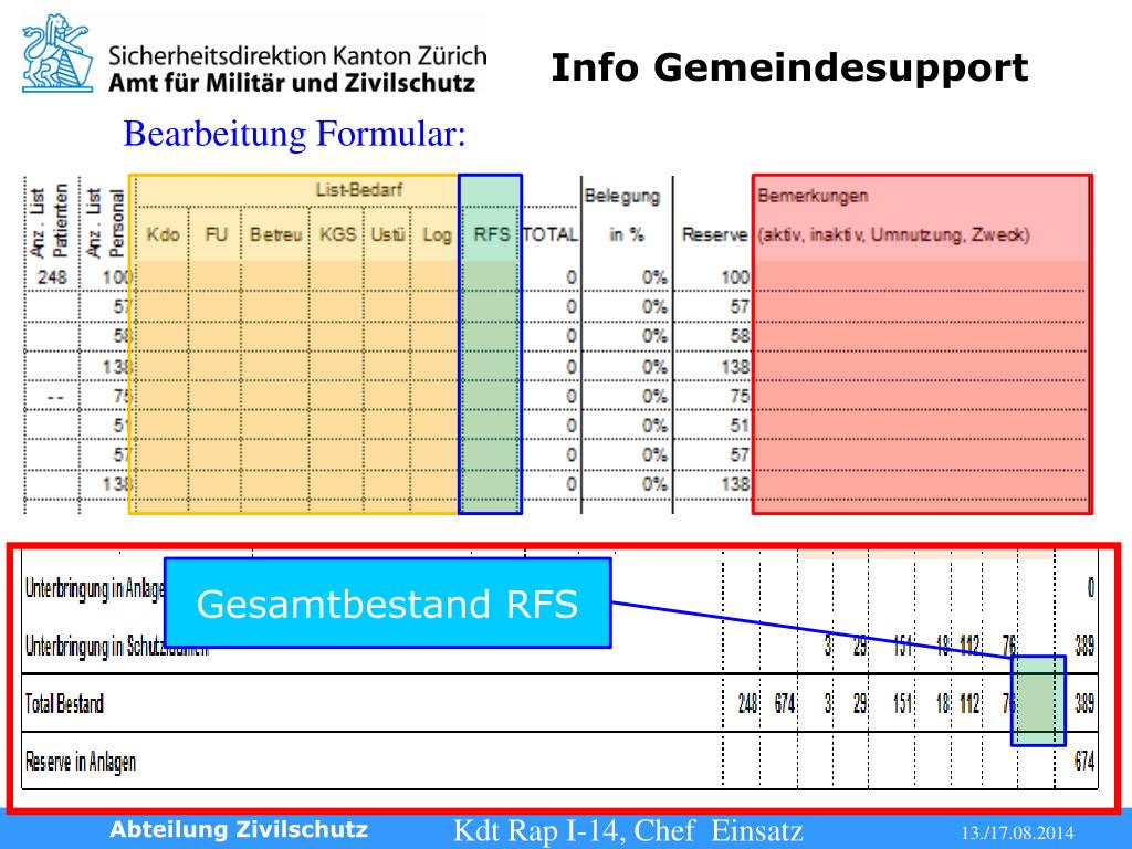 Bearbeitung Formular: Gesamtbestand RFS Abteilung Zivilschutz
