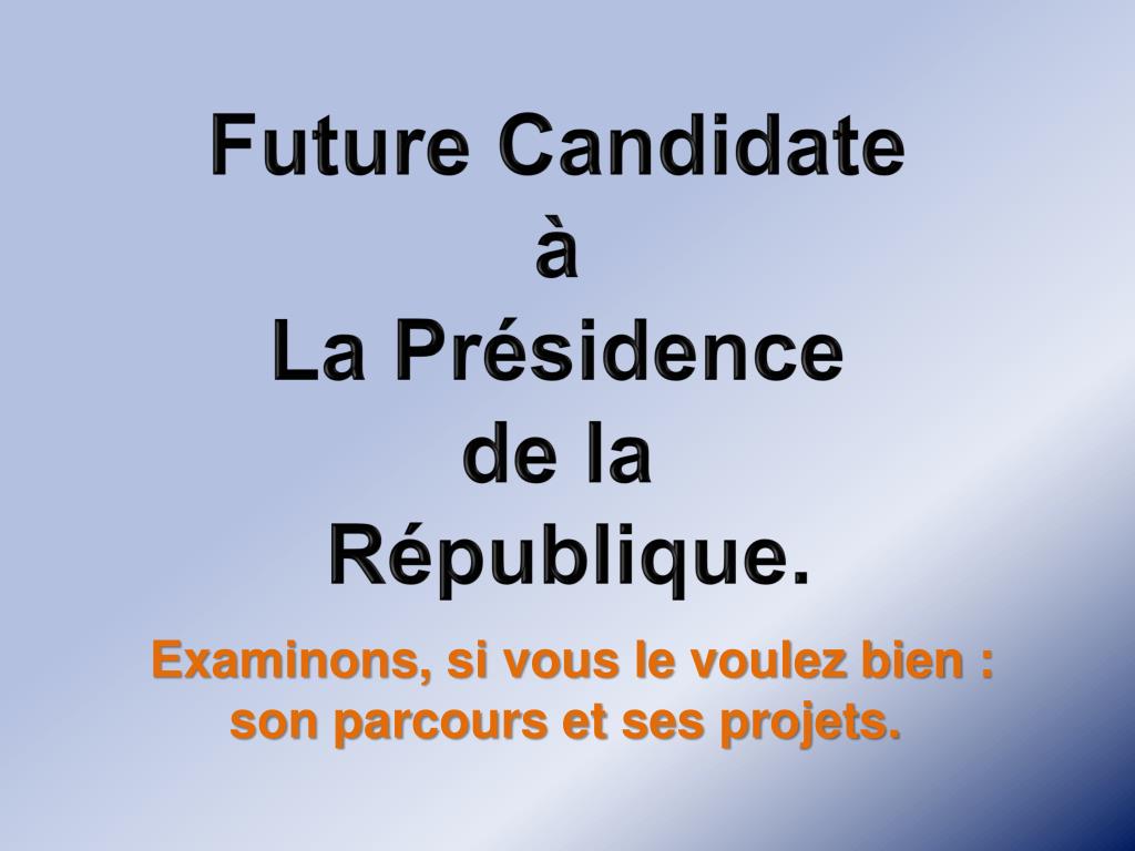 Future Candidate à La Présidence de la République. Examinons, si vous le voulez bien : son parcours et ses projets.