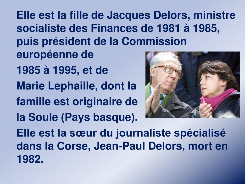 Mademoiselle DELORS . Ou Martine Aubry Maire De Lille (59). avancer en cliquant. messager . Future Candidate à La Présidence de la République. Examinons, si vous le voulez bien : son parcours et ses projets. .