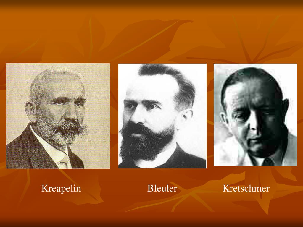 A pszichiátria klasszikusai II Kahlbaum (1826-1899) a katatónia leírója Kraepelin (1856-1926)exogén-endogén pszichózisok nozológiai rendszer kidolgozója München – idegtudományi hagyomány elindítója Bleuler (1857-1939)a modern pszichiátria „atyja", „szkizofrénia” Kretschmer (1893-1964) testalkat és karakter