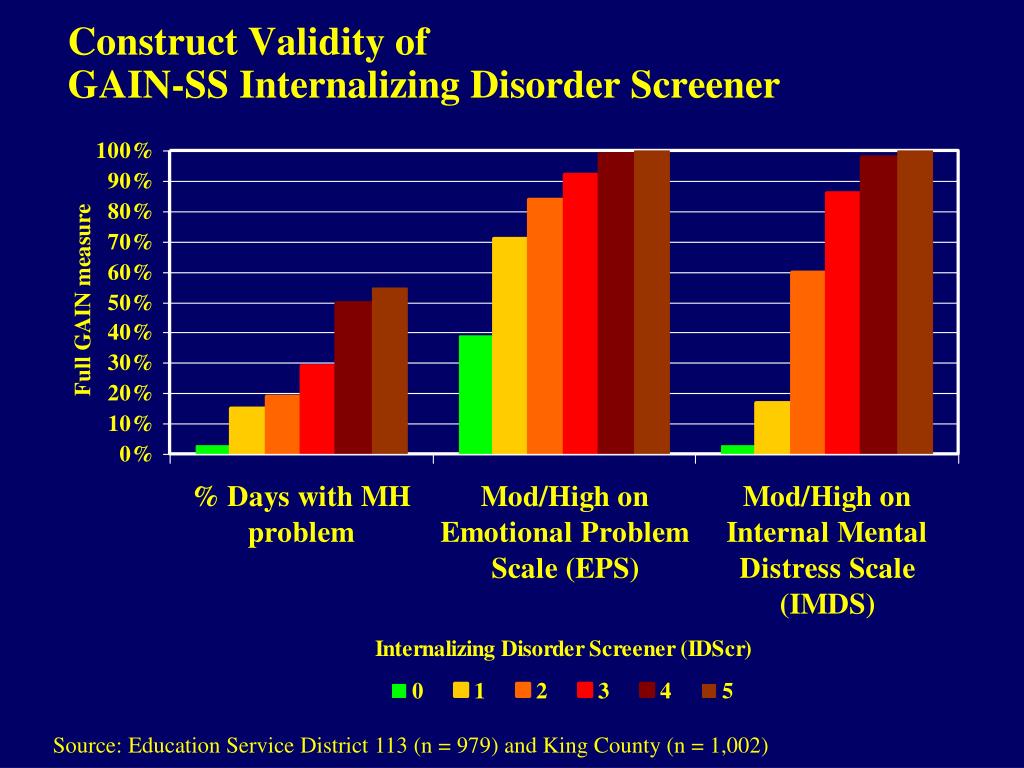 Construct Validity of GAIN-SS Internalizing Disorder Screener Source: Education Service District 113 (n = 979) and King County (n = 1,002)