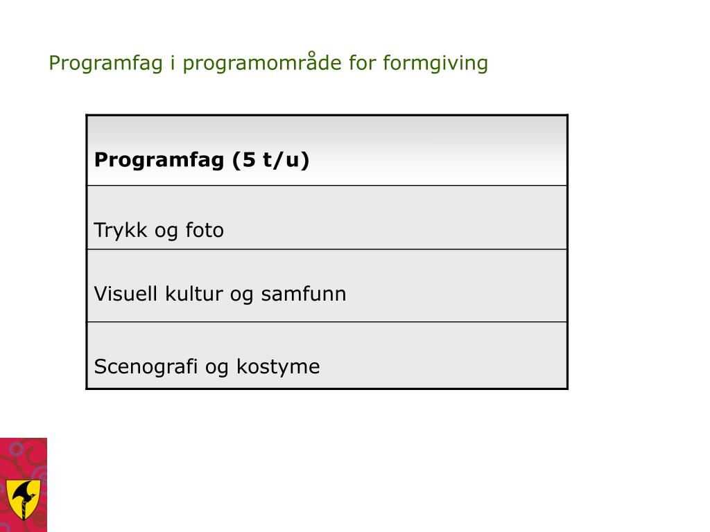 PROGRAMFAG KOMMUNIKASJON OG KULTUR • Forstå, vurdere og produsere tekster (skrift, bilde, film) • Sjangerbevissthet, sjangerkompetanse • Refleksjon over eget og andres uttrykk • Forstå språk som kultur- og identitetsbærer • Utvidet perspektiv på språk/kommunikasjon