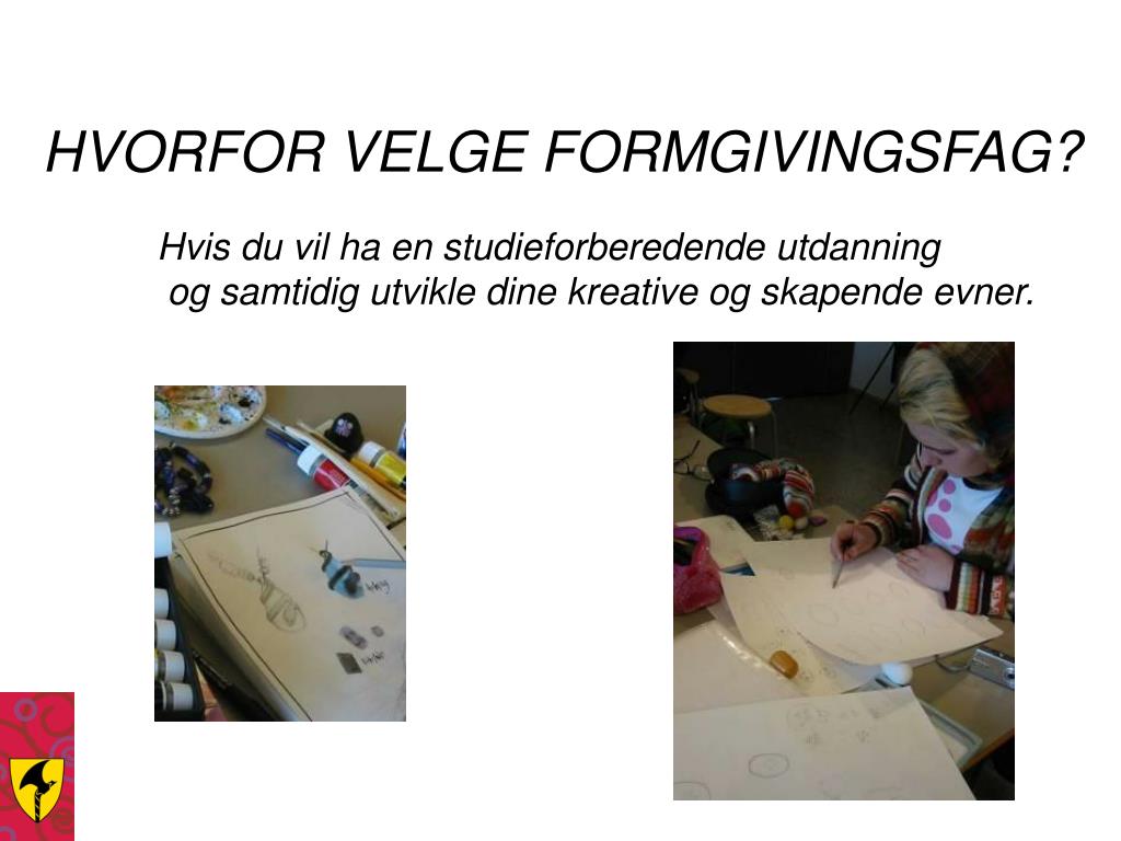 HVORFOR VELGE FORMGIVINGSFAG? Hvis du vil ha en studieforberedende utdanning og samtidig utvikle dine kreative og skapende evner.