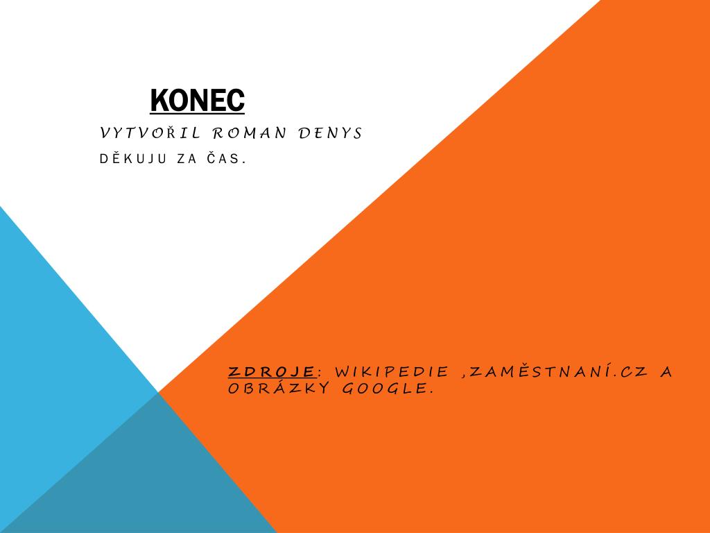 Konec Vytvořil Roman Denys Děkuju za čas. • Zdroje: Wikipedie ,zaměstnaní.cz a obrázky Google.