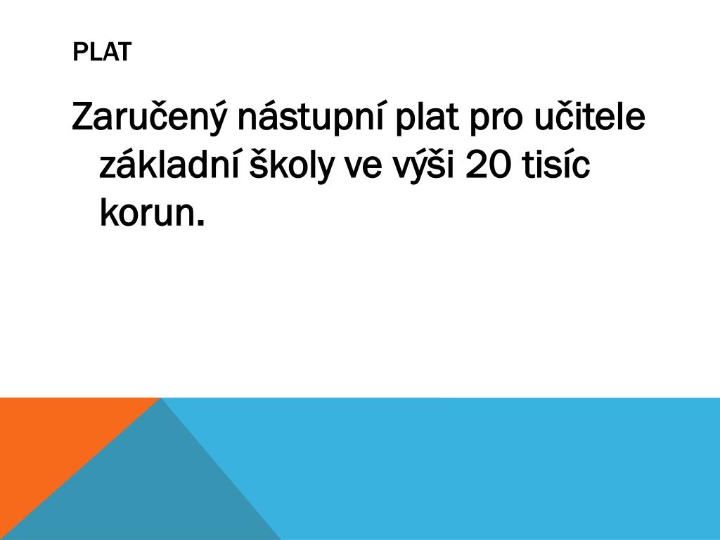 Plat • Zaručený nástupní plat pro učitele základní školy ve výši 20 tisíc korun.