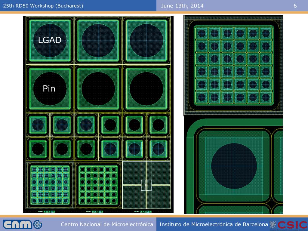 What is new? • New mask designed at CNM with many suggestions from all the groups. • Thickness of the substrates: 200um. • Only electron collection. • Improve surface isolation (p-stop). • Different terminations. • Pads with different sizes + Strips and pixel detectors. • Diodes for timing applications, TOTEM, AFP and PPS • Different test structures to measure the multiplication layer. • Try heavy dopants: Ga.