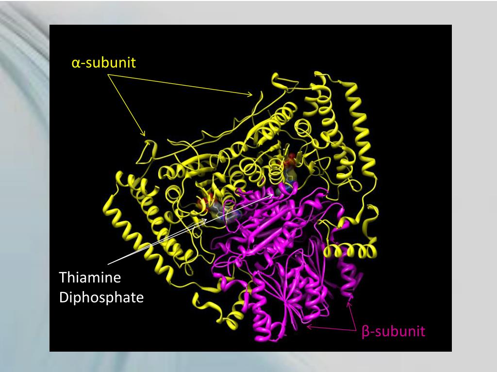 Branched Chain Amino Acid Dehydrogenase Complex (BCKD) • A complex of enzymes that forms Acyl-CoA derivatives from α-keto acids. • E1- α-ketoacidDehydrogenase • E2- DihydrolipoylTransacylase • E3- DihydrolipoamidDehydrogenase • Ranges in molecular mass from 4 to 10 million daltons, depending on source and type5.