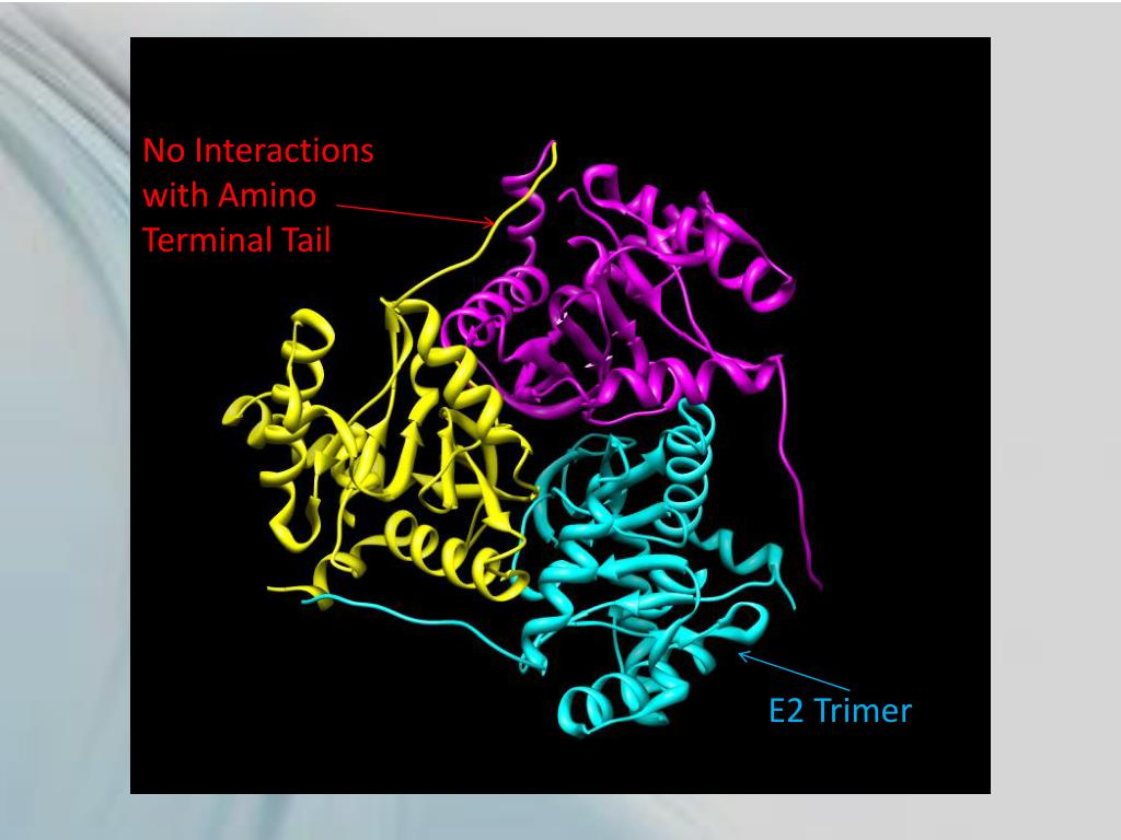 DihydrolipoamideDehydrogenase (DLD) • Gene codes for an enzyme that degrades lipoamide and produces dihydrolipoamide. • In the BCKD Complex, DLD processes one of the by-products of Acyl-CoA formation from branched chain amino acids10. • Two E3 monomers dimerize to form the dimeric catalytic subunit E311.