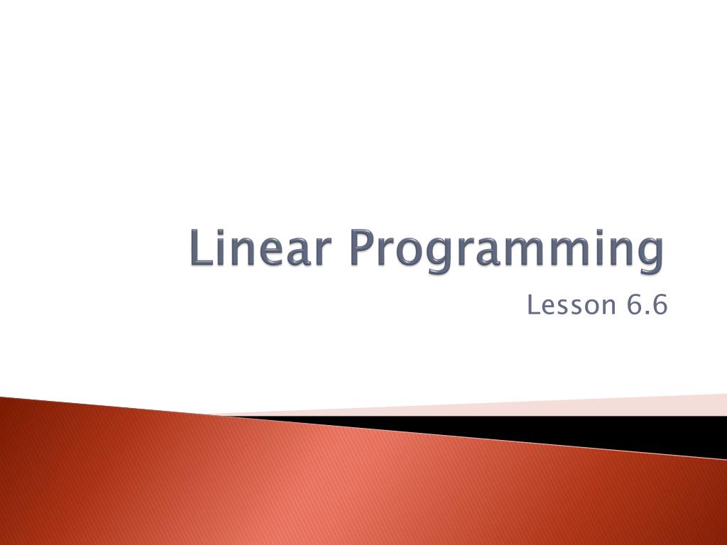 Industrial managers must consider physical limitations, standards of quality, customer demand, availability of materials, and manufacturing expenses as restrictions, or constraints, that determine how much of an item they can produce. • Then they determine the optimum, or best, amount of goods to produce—usually to minimize production costs or maximize profit. • The process of finding a feasible region and determining the point that gives the maximum or minimum value to a specific expression is called linear programming.