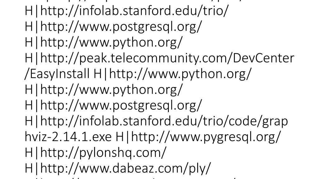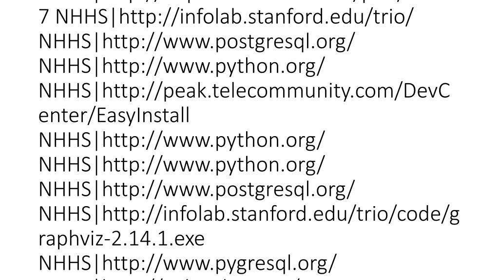vti_cachedsvcrellinks:VX|NHHS|http://www.python.org/ NHHS|http://peak.telecommunity.com/DevCenter/EasyInstall NHHS|http://www.python.org/ NHHS|http://www.python.org/ NHHS|http://www.postgresql.org/ NHHS|http://infolab.stanford.edu/trio/code/graphviz-2.14.1.exe NHHS|http://www.pygresql.org/ NHHS|http://pylonshq.com/ NHHS|http://www.dabeaz.com/ply/ NHHS|http://pyparsing.wikispaces.com/ NHHS|http://code.google.com/p/pydot/downloads/list NHHS|http://infolab.stanford.edu/~theobald/sources/TRIO.zip NHHS|http://localhost:8080/ NHHS|http://infolab.stanford.edu/~widom/triql.html NHUS|PositionPapersSlides/TriQL_ppt.doc NHHS|http://dbpubs.stanford.edu:8011/doku.php/trio:installation NHHS|http://www.graphviz.org/ NHHS|http://infolab.stanford.edu/trio/code/graphviz-2.14.1.exe NHHS|http://infolab.stanford.edu/~widom/triql.html NHHS|http://dbpubs.stanford.edu/pub/2007-1 NHHS|http://dbpubs.stanford.edu/pub/2006-7 NHHS|http://infolab.stanford.edu/trio/ NHHS|http://www.postgresql.org/ NHHS|http://www.python.org/ NHHS|http://peak.telecommunity.com/DevCenter/EasyInstall NHHS|http://www.python.org/ NHHS|http://www.python.org/ NHHS|http://www.postgresql.org/ NHHS|http://infolab.stanford.edu/trio/code/graphviz-2.14.1.exe NHHS|http://www.pygresql.org/ NHHS|http://pylonshq.com/ NHHS|http://www.dabeaz.com/ply/ NHHS|http://pyparsing.wikispaces.com/ NHHS|http://code.google.com/p/pydot/downloads/list NHHS|http://infolab.stanford.edu/~theobald/sources/TRIO.zip NHHS|http://localhost:8080/ NHHS|http://infolab.stanford.edu/~widom/triql.html NHUS|PositionPapersSlides/TriQL_ppt.doc NHHS|http://dbpubs.stanford.edu:8011/doku.php/trio:installation NHHS|http://www.graphviz.org/ NHHS|http://infolab.stanford.edu/trio/code/graphviz-2.14.1.exe NHHS|http://infolab.stanford.edu/~widom/triql.html NHHS|http://dbpubs.stanford.edu/pub/2007-1 NHHS|http://dbpubs.stanford.edu/pub/2006-7 NHHS|http://infolab.stanford.edu/trio/ NHHS|http://www.postgresql.org/