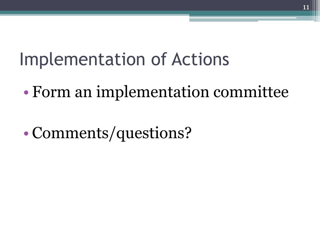 Implementation of Actions • Form an implementation committee • Comments/questions?