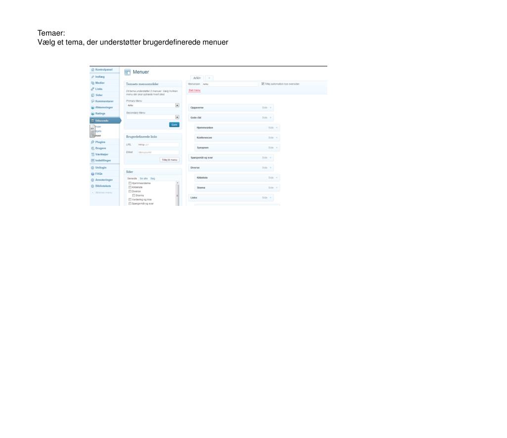 Temaer: Vælg et tema, der understøtter brugerdefinerede menuer