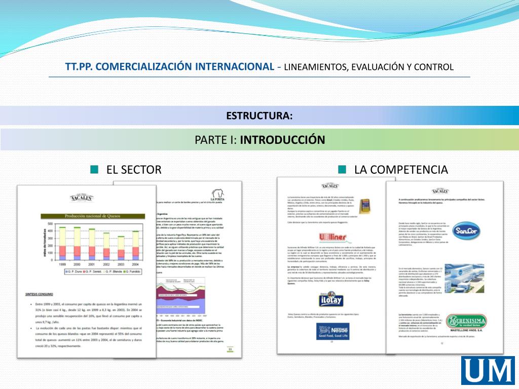 TT.PP. COMERCIALIZACIÓN INTERNACIONAL - LINEAMIENTOS, EVALUACIÓN Y CONTROL ESTRUCTURA: PARTE I: INTRODUCCIÓN EL SECTOR LA COMPETENCIA