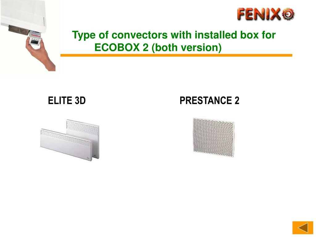 Type of convectors with installed box for ECOBOX 2 (both version) ELITE 3D PRESTANCE 2