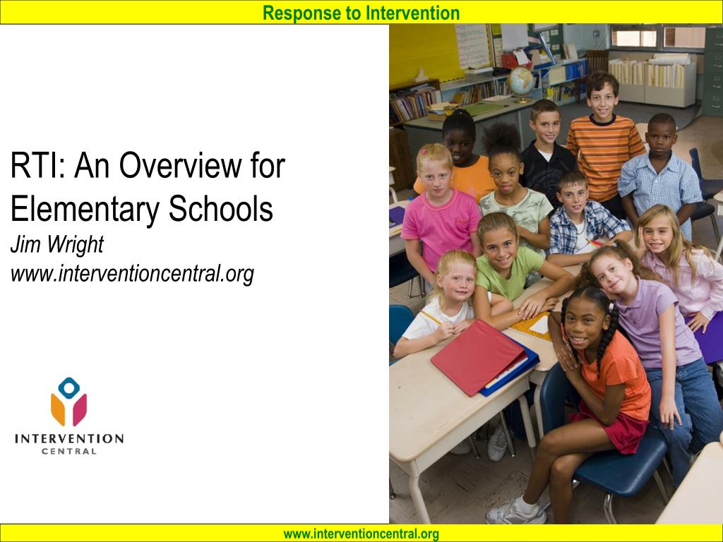 RTI: An Overview for Elementary Schools Jim Wright www.interventioncentral.org. RTI: An Introduction. Tiers 1, 2 & 3: Description. Systems-Level Change/Planning Time. Review of RTI Web Resources to Support Schools. RTI & Elementary Schools: Agenda….