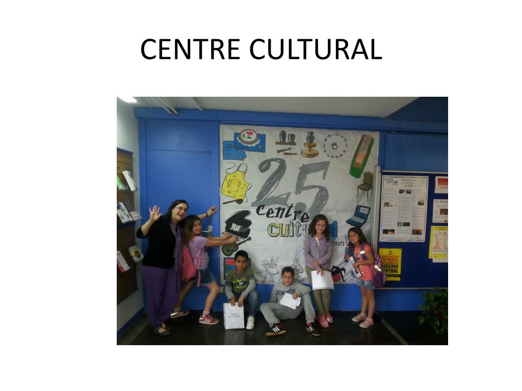 CENTRE CULTURAL • El centre cultural és un equipament municipal de Canovelles que promouactivitatsculturals. • Fa 26 anys des del 1988 • Fan activitatscomtallers, piano, guitarra, dibuix, cuina, exposicions, xerrades, festestradicionals i suport a les entitats. • Pertany a la Barriada Nova. CarrerIndústria 22. • Les portes sónrares