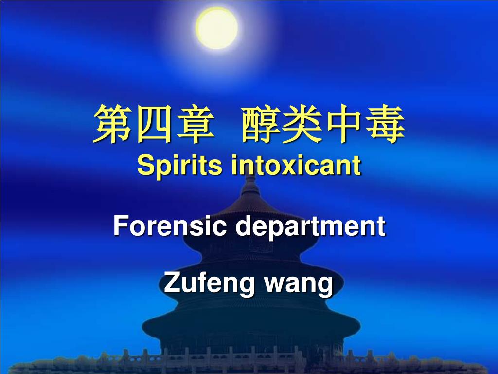 第四章 醇类中毒Spirits intoxicant Forensic department Zufeng wang