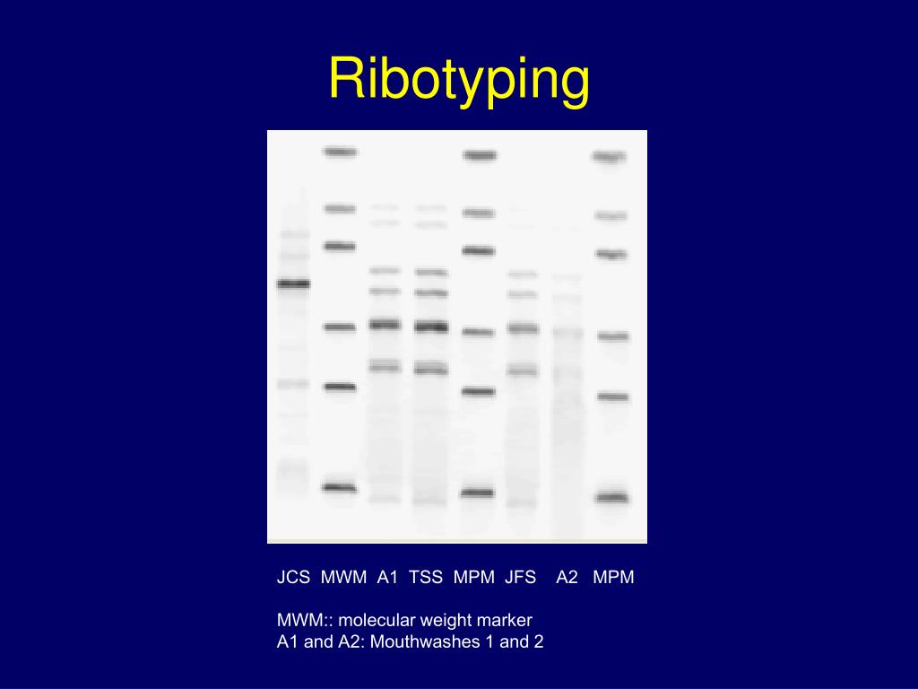 Ribotyping JCS MWM A1 TSS MPM JFS A2 MPM MWM:: molecular weight marker A1 and A2: Mouthwashes 1 and 2