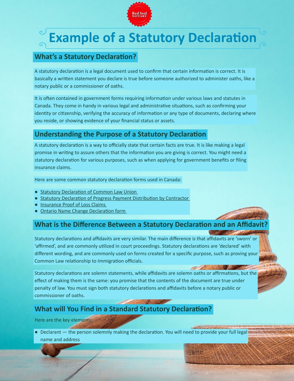 Looking for an Example of a statutory declaration? Learn its format, legal purpose, key elements, and how to complete the form correctly.<br>https://www.redsealnotary.com/what-is-a-statutory-declaration-form/