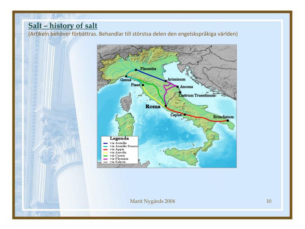 Salt – history of salt(Artikeln behöver förbättras. Behandlar till störstsa delen den engelskspråkiga världen) Marit Nygårds 2004