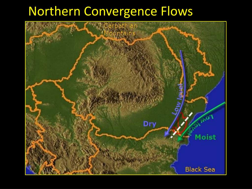 Convergence Models - Romania Convergence zone Sea breeze Northern convergence flow Mountain breeze Southern convergence flow Back building squall line