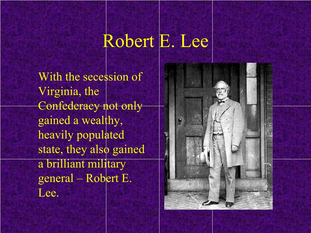 Robert E. Lee With the secession of Virginia, the Confederacy not only gained a wealthy, heavily populated state, they also gained a brilliant military general – Robert E. Lee.