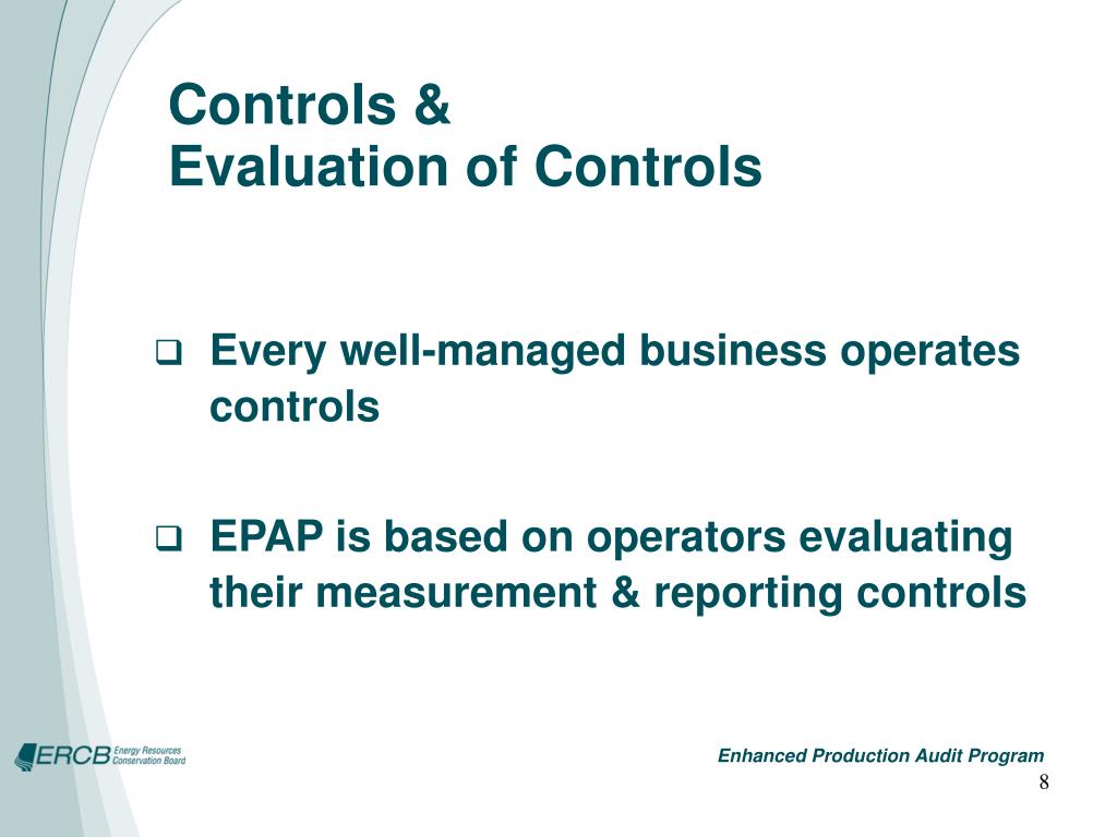 Controls & Evaluation of Controls • Every well-managed business operates controls • EPAP is based on operators evaluating their measurement & reporting controls