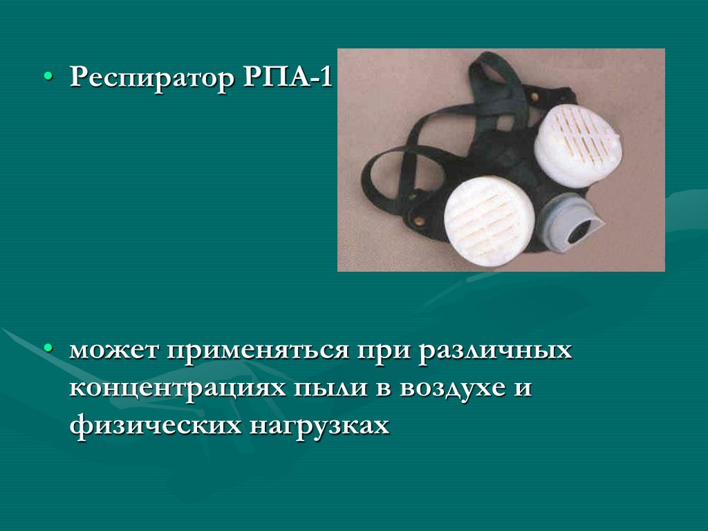 Респиратор РПА-1 • может применяться при различных концентрациях пыли в воздухе и физических нагрузках