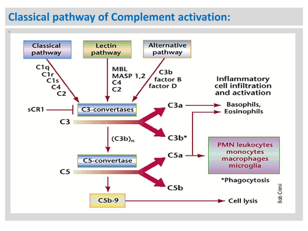 The Complement system: Complement system is a series of solublecirculatingenzymes and proteins that function in both innate and adaptive immune response against pathogens. The process of complement activation could be initiated via: 1-Alternative pathway. 2-Mannan-binding lectin pathway. 3-Classical pathway.