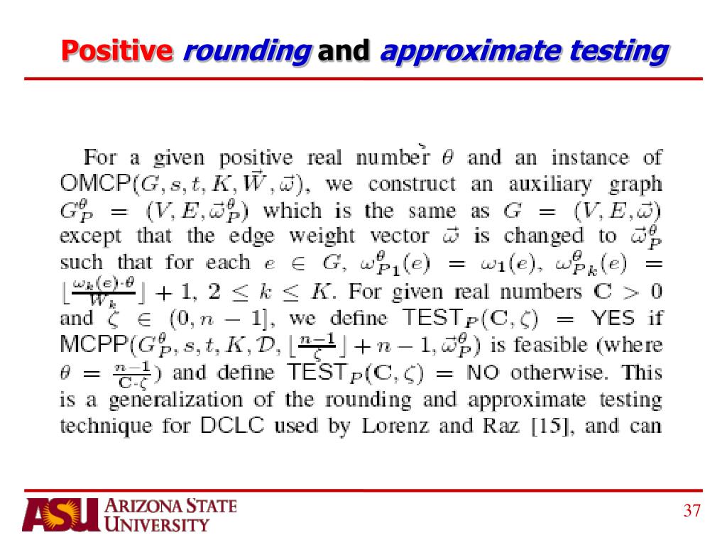 Faster Approximation Schemes for OMCP • All previous approximation schemes for OMCP are based on • Initial bounds • Scaling and rounding, and approximate testing • Final solution • Hassin rounds to floor. Lorenz and Raz round to floor plus one, and showed its advantage over that of Hassin. • A simple combination of the two techniques leads to an approximation scheme that is better than both.