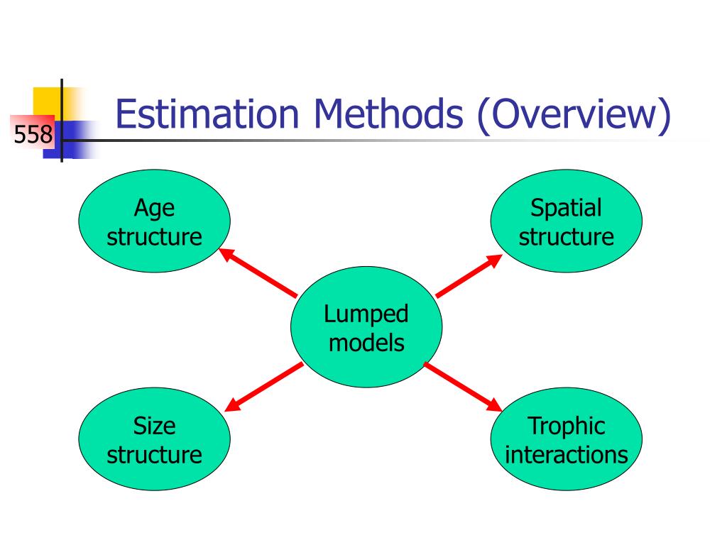 Estimation Methods (Overview) Age structure Spatial structure Lumped models Size structure Trophic interactions