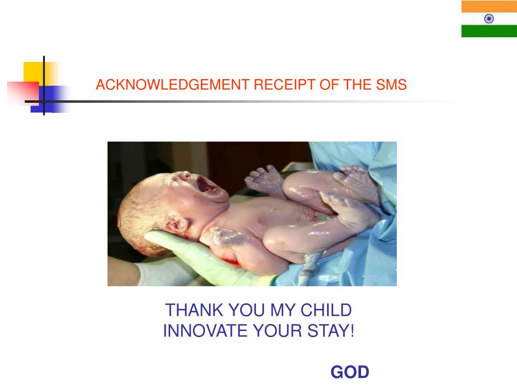 ACKNOWLEDGEMENT RECEIPT OF THE SMS THANK YOU MY CHILD INNOVATE YOUR STAY! GOD