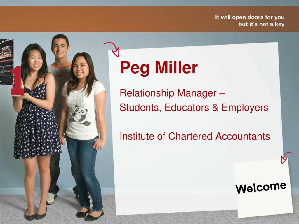 Peg Miller Relationship Manager – Students, Educators & Employers Institute of Chartered Accountants Welcome