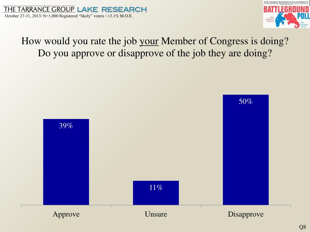 How would you rate the job your Member of Congress is doing? Do you approve or disapprove of the job they are doing? Q8